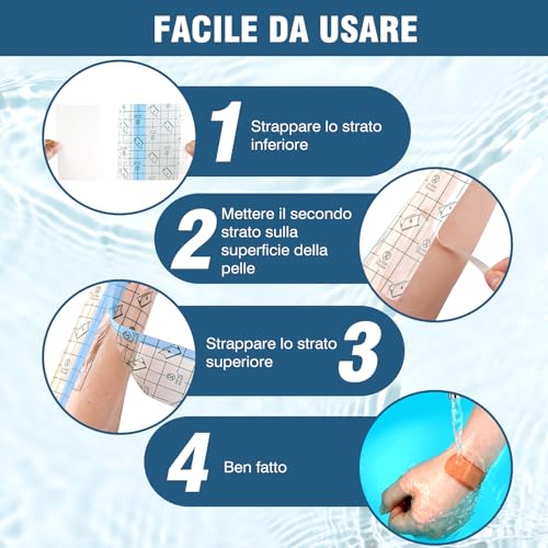 【Facile da usare】Togli lo strato inferiore quando lo usi, attacca il secondo strato alla pelle e poi strappa il primo strato di pellicola. La Cerotti Impermeabile ultra-sottile può adattarsi perfettamente alla pelle, non facile da togliere e traspirante.