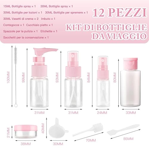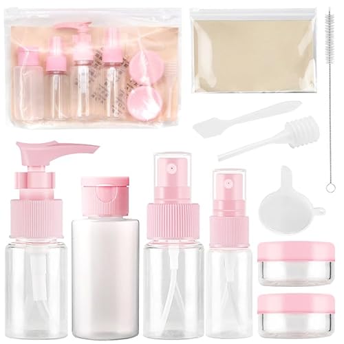Scettar 11 Pezzi Contenitori Viaggio Liquidi Contenitori da Viaggio per Liquidi in Materiale PP, Mini Size da Viaggio Prodotti Per Lozione Crema Viso Shampoo Balsamo Detergente Corpo (Rosa)