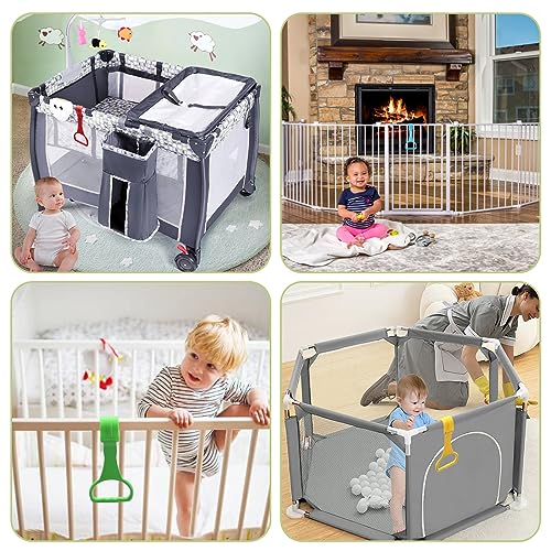 Scettar 6 Pezzi Maniglie per Maniglie Box Bambini, Anelli Box Bambini,Anelli Lettino per Aiutare i Bambini a Imparare a Stare in Piedi, Appesi Sopra il Lettino da Campeggio per Bambini, Grande