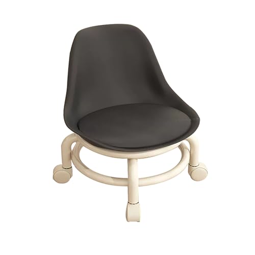 SCHAAN Sgabelli rotanti per la casa con Ruote, Sedile Basso con rotelle con Schienale, Sgabello Rotante Girevole a 360° per Pedicure, Comodo Sgabello Multiuso per Pedicure,Black-38cm