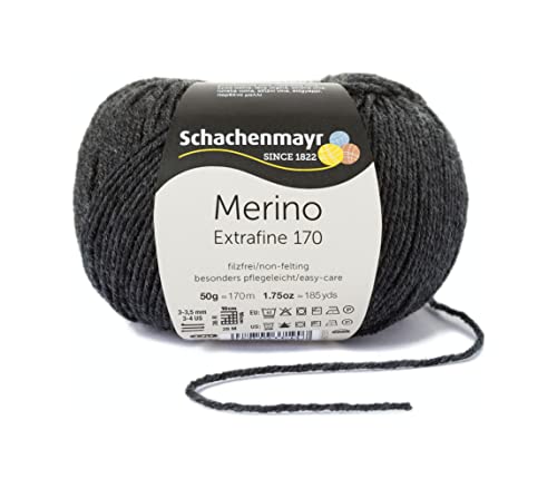 Schachenmayr Merino Extrafine 170, 50G Anthrazit melier Filati per Maglieria A Mano