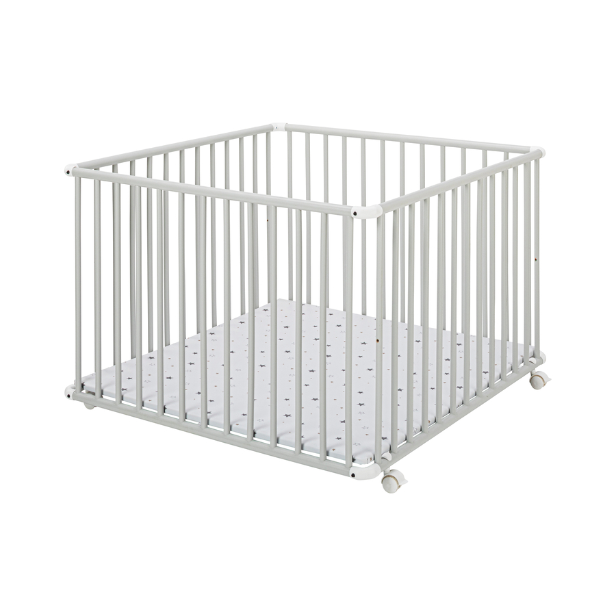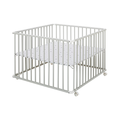 Moderno ed innovativo - progettato con cura. Schardt punta sulla sostenibilità e qualità - progettazione e sviluppo di mobili ecologici, che giocano un ruolo importante. Il box è realizzato in legno di faggio massello ed è particolarmente stabile. La base in truciolato e PVC è regolabile in due altezze. Dettagli del prodotto: Colore: grigio chiaro Materiale box: Faggio massello, laccato Materiale di rivestimento: PU-schiuma, PVC-Folie Superficie di riposo: Larghezza x lunghezza 100 cm x 100 cm Dimensioni: Ampiezza x Lunghezza x Altezza 102 cm x 102 cm x 70 cm Base regolabile in 2 livelli Con easy click- angoli di plastica facilmente smontabili 4 ruote bloccabili Peso massimo supportato: 15 kg circa Inclusi nella confezione: Box per bambini 4 rotelle