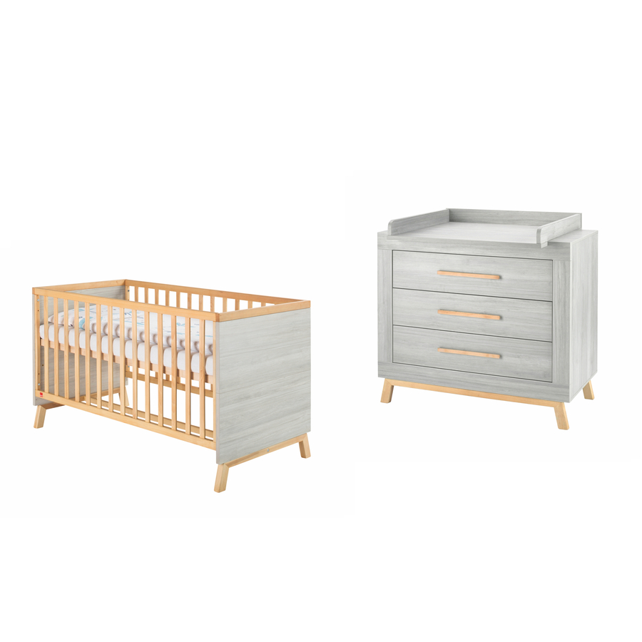 Bellissima linea Miami, in diversi colori. La serie Miami è sinonimo di design senza tempo. Tutto ciò che ti serve per la cameretta del tuo bebè. Dettagli del prodotto: Lettino Colore: grigio/Suomi Pine Materiale sbarre e piedi: In faggio massiccio oliato Materiale sponde: legno truciolato, rivestito di melammina Superficie di riposo: Larghezza x lunghezza 70 x 140 cm Dimensioni: Ampiezza x Lunghezza x Altezza 77 x 144 x 86 cm Rete regolabile in 3 posizioni 3 sbarre staccabili Convertibile in letto junior Pannelli laterali per trasformare la culla in un letto junior Colore: bianco Materiale: legno truciolato, melaminico Dimensioni: Ampiezza x Lunghezza x Altezza 2 x 140 x 14 cm Mobile fasciatoio Colore: antracite/Suomi Pine Materiale struttura e ante: legno truciolato, rivestito di melammina Materiale piedi e pomelli: In faggio massiccio oliato Misure senza base fasciatoio: Ampiezza x Lunghezza x Altezza 109 x 53 x 93 cm Misure con base fasciatoio: Ampiezza x Lunghezza x Altezza 109 x 72 x 101 cm Altezza fasciatoio: 93 cm Base fasciatoio rimovibile 3 cassetti con chiusura soft closing Guide laterali extra robuste Inclusi nella spedizione: Lettino Fasciatoio Base per il cambio Pannelli laterali per trasformare la culla in un letto junior Attenzione: Materasso e decorazioni NON sono inclusi nella spedizione!