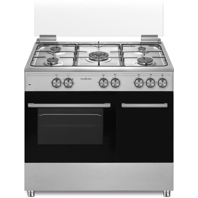 Codice: SS590EX Marca: SCHAUB LORENZ. Cucina Elettrica SS590EX Libera installazione, Forno elettrico multifunzione con 6 funzioni. 5 Fuochi a Gas con dispositivo di sicurezza. Accensione elettronica sottomanopola. Cavità smaltata, 1 Griglia forno, 1 Vassoio forno, Luce forno. Piedini regolabili. Coperchio in cristallo. Apertura vano sottoforno: ribaltina. Volume cavità forno: 59 Litri. Termostato. Dimensioni (A x L x P cm) 90 x 90 x 60 cm. Colore Acciaio Inox