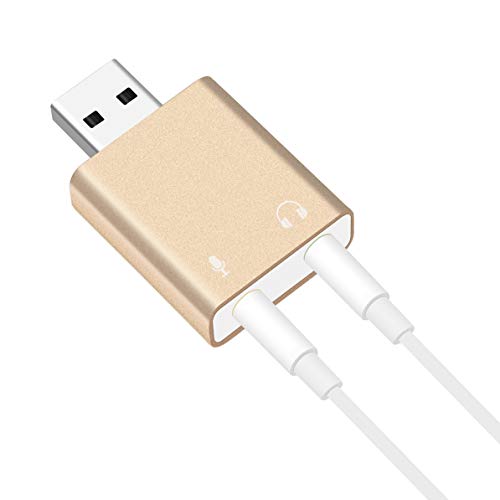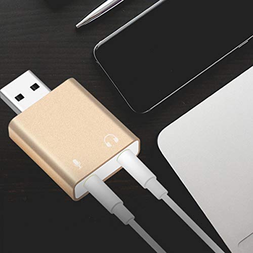 Scheda Audio Esterna Sunnyflowk da USB a Auricolare Cuffia Microfono Jack Adattatore USB Scheda Audio per Scheda Audio per Computer Portatile (Oro di Lusso)