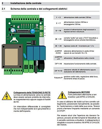 Centrale monofase per 1 motore 230 Vac. Cancelli scorrevoli, porte basculanti, serrande. 3 velocità di rallentamento, apprendimento tempi automatico, Motore 230V - 750W Temperatura di esercizio: -20°C - +60° C