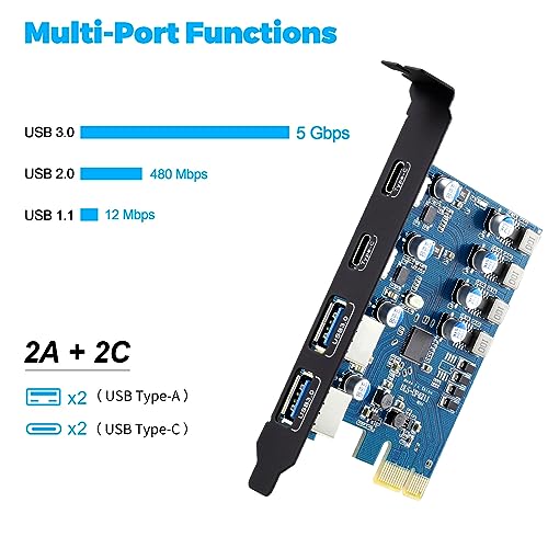 Scheda USB 3.0 PCI Express Interna 5Gbps (2 xUSB C, 2 xUSB A), USB 3.2 (USB 3.1) Gen1 PCIe USB Card per PC Desktop Supporto Mac OS Windows
