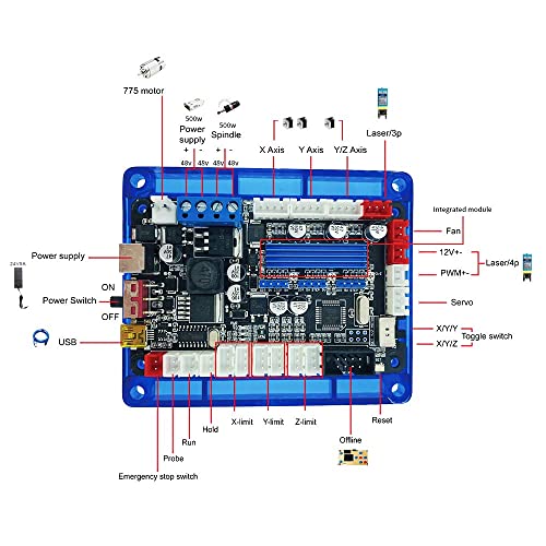 Scheda madre CNC, GRBL 1.1 per fresatrice CNC Macchina per incisione laser, Scheda di controllo a 3 assi Scheda controller driver integrata Supporto massimo motore 48V 500W