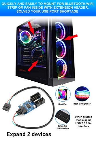 Ampia applicazione: Splitter USB a 9 pin interno Convertire 1 scheda madre USB 2.0 maschio a 2 femmine. Questo adattatore come splitter per scheda madre USB 2.0 può collegare più dispositivi. È puramente per i dati ma non l'alimentazione, quindi un buon ideale collegare Corsair commander pro, TP Link PCIE, SATA/PCIE SSD card, WIFI card, CPU, ventole di raffreddamento e luce RGB all'interno della scheda madre, risolvere la vostra interfaccia USB carenza di scheda madre.