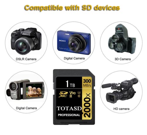Scheda di memoria TOTASD SDXC Card 1TB 1024GB UHS-II U3 C10 SD Memory Card Class 10,V90 8K UHD Read Speed up to 300MB/s for Photographers,Vloggers,Filmmakers & Content Curators
