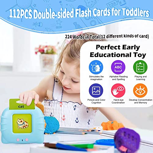 Divertenti giocattoli didattici: le schede flash parlanti contengono 112 carte fronte/retro con 224 parole visive, tra cui animali, veicoli, personaggi e alimenti, ecc. Flashcard dei cartoni animati, pronuncia chiara, effetto sonoro interessante, ripetizione di lettura e avvistamento parole simulano notevolmente l'immaginazione dei bambini. Ottimo giocattolo di apprendimento per bambini di 1 2 3 anni e fino a imparare parole di vista, migliorare le capacità cognitive, esercitare l'udito e costruire il vocabolario. Grandi giocattoli per la logopedia per i più piccoli 1-3.