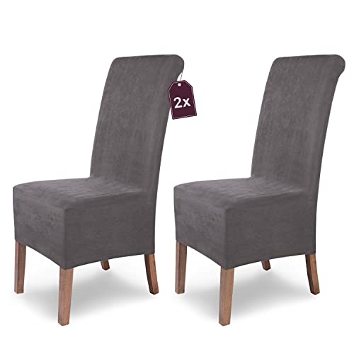 SCHEFFLER-Home Coprisedie Leon/Set di 2 Copri Sedie da Pranzo Elastici/Sedie da Pranzo/Coprisedie Elasticizzato Scamosciato con Fascia Elastica/Coprisedie Eleganti, Grigio