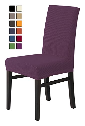 SCHEFFLER-HOME Rustico Coprisedie 2 pezzi, elasticizzato Copertura della sedia, elastico Vestisedia moderno, Decorativo protezione in stretch in tessuto con banda elastica per una misura universale, Coppia spandex Coprisedia, eleganti belle cialda-ottica - Porpora-Viola