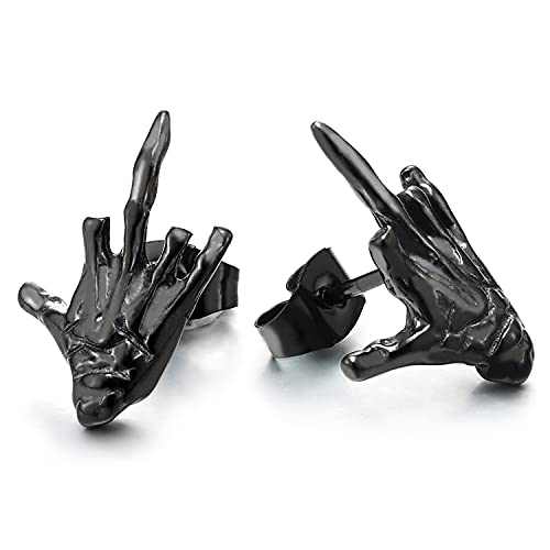 Nero Mano Scheletro Osseo Orecchini da Uomo Donna, Orecchini a Lobo, Acciaio, Riavvitare, Gotico Punk Rock Biker 2 Pezzi