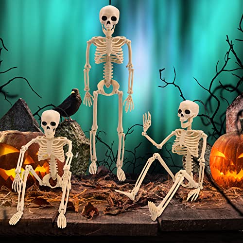 3 Scheletro Posabile di Halloween 40 cm Scheletro a Corpo Intero da Appendere scheletri di Halloween Piccolo Scheletro posabile con articolazioni mobili per Oggetti di Scena di Halloween