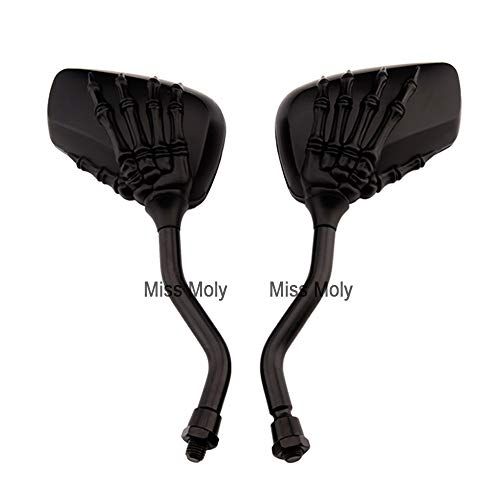 Moto Mano di Scheletro Specchietto Retrovisore, 8mm 10mm Laterale Specchi Retrovisori per Scooter Cruiser Chopper (Nero)