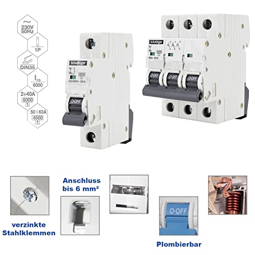 ✅ Gli interruttori automatici della marca Schelinger si trovano nelle caratteristiche B o C. Sono disponibili a scelta a 1 polo o 3 poli e vanno da 6 A a 63 A.