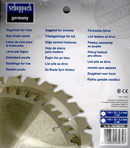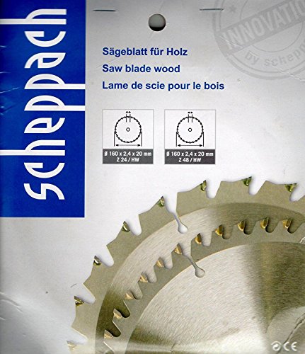 Scheppach Disco di taglio per sega circolare, ideale per lavorare legno e materiali in metallo duro, da 160 x 2,4 x 20 mm, a 24 e 48 denti