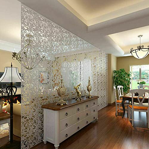Schermo divisorio, 12 pezzi, bianco, divisorio in ABS, divisorio per stanza, con motivo floreale e uccello, da parete fai da te, 40 x 40 cm