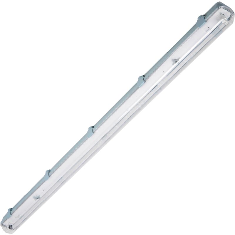Alloggiamento impermeabile per tubo LED (tubo LED non incluso). Schermo impermeabile appositamente progettato per l'installazione di tubi LED. Ha le connessioni elettriche adattate ai tubi LED (verifica che questo modello si adatti al tipo di connessione del tuo tubo LED). Schermo impermeabile appositamente progettato per proteggere il tubo LED dalle intemperie grazie alla sua protezione IP65. Ideale per illuminare facciate, soffitti, residenze, parcheggi, aree esterne, illuminazione commerciale. Sono anche usati per contrassegnare scale e corridoi. Specifiche Custodia impermeabile per tubo LED (tubo LED non incluso), con protezione IP65 contro l'umidità interna. Predisposto per installare un tubo LED tipo T8 da 1200 mm. Portalampada tipo G13. MOLTO IMPORTANTE: Schermo predisposto per l'installazione di tubi LED con connessioni (L,N) ad entrambe le estremità. Dimensioni totali assemblate (lunghezza x larghezza x altezza): 1270 x 80 x 90 mm. Il diffusore è realizzato in policarbonato