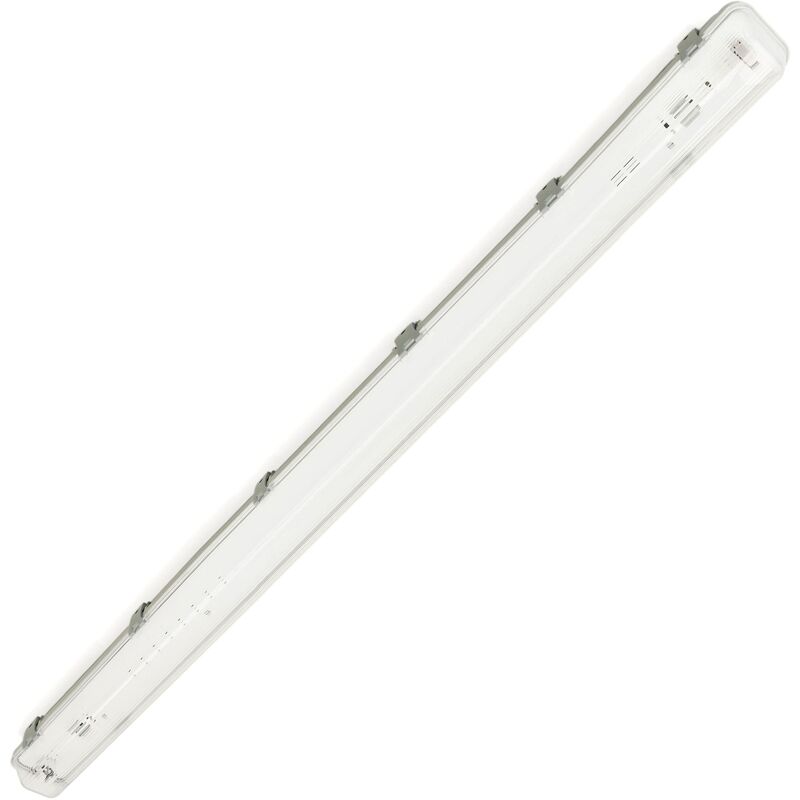 Custodia impermeabile per tubo LED (tubo LED non incluso). Schermo impermeabile appositamente progettato per l'installazione di tubi a LED. Ha i collegamenti elettrici adattati ai tubi LED (controlla che questo modello si adatti al tipo di connessione del tuo tubo LED). Schermo impermeabile appositamente progettato per proteggere il tubo LED dalle intemperie grazie alla sua protezione IP65. Ideale per illuminare facciate, soffitti, abitazioni, parcheggi, zonEsterni, luce commerciale. Sono anche usati per segnare scale e corridoi. Specifiche Custodia impermeabile per tubo LED (tubo LED non incluso), con protezione IP65 contro l'umidità interna. Predisposto per installare un tubo LED T8 da 1500 mm. Portalampada G13. MOLTO IMPORTANTE: schermo predisposto per l'installazione di tubi LED con connessioni (L, N)su entrambe le estremità. Dimensioni totali montate (lunghezza x larghezza x altezza): 1565 x 80 x 90 mm. Il diffusore è realizzato in policarbonato resistente al calore e agli urti.