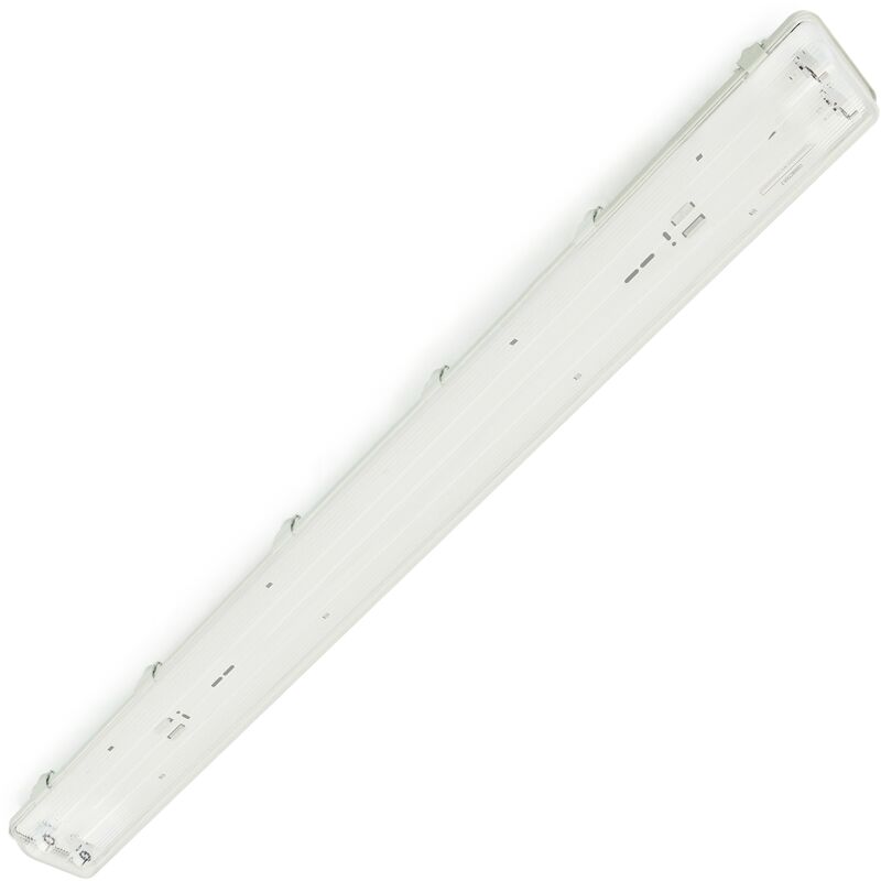 Custodia impermeabile per tubi LED (tubo LED non incluso). Schermo impermeabile appositamente progettato per l'installazione di tubi a LED. Ha i collegamenti elettrici adattati ai tubi LED (controlla che questo modello si adatti al tipo di connessione del tuo tubo LED). Schermo impermeabile appositamente progettato per proteggere i tubi a LED dalle intemperie grazie alla sua protezione IP65. Ideale per illuminare facciate, soffitti, abitazioni, parcheggi,aree esterne, luce commerciale. Sono anche usati per segnare scale e corridoi. Specifiche Custodia impermeabile per tubi LED (tubo LED non incluso), con protezione IP65 contro l'umidità interna. Preparato per installare due tubi LED T8 da 1500 mm. Portalampada G13. MOLTO IMPORTANTE: schermo predisposto per l'installazione di tubi a LED con collegamenti(L, N) su entrambe le estremità. Dimensioni totali montate (lunghezza x larghezza x altezza): 1565 x 125 x 90 mm. Il diffusore è realizzato in policarbonato resistente al calore e agli