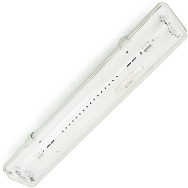 Custodia impermeabile per tubi LED (tubo LED non incluso). Schermo impermeabile appositamente progettato per l'installazione di tubi a LED. Ha i collegamenti elettrici adattati ai tubi LED (controlla che questo modello si adatti al tipo di connessione del tuo tubo LED). Schermo impermeabile appositamente progettato per proteggere i tubi a LED dalle intemperie grazie alla sua protezione IP65. Ideale per illuminare facciate, soffitti, abitazioni, parcheggi,aree esterne, luce commerciale. Sono anche usati per segnare scale e corridoi. Specifiche Custodia impermeabile per tubi LED (tubo LED non incluso), con protezione IP65 contro l'umidità interna. Predisposto per installare due tubi LED T8 da 600 mm. Portalampada G13. MOLTO IMPORTANTE: schermo predisposto per l'installazione di tubi a LED con connessioni (L, N) ad entrambe le estremità. Dimensioni totali montate (lunghezza x larghezza x altezza): 660 x 125 x 90 mm. Il diffusore è realizzato in policarbonato resistente al calore e agli