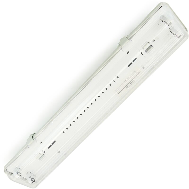 Custodia impermeabile per tubi LED (tubo LED non incluso). Schermo impermeabile appositamente progettato per l'installazione di tubi a LED. Ha i collegamenti elettrici adattati ai tubi LED (controlla che questo modello si adatti al tipo di connessione del tuo tubo LED). Schermo impermeabile appositamente progettato per proteggere i tubi a LED dalle intemperie grazie alla sua protezione IP65. Ideale per illuminare facciate, soffitti, abitazioni, parcheggi,aree esterne, luce commerciale. Sono anche usati per segnare scale e corridoi. Specifiche Custodia impermeabile per tubi LED (tubo LED non incluso), con protezione IP65 contro l'umidità interna. Predisposto per installare due tubi LED T8 da 600 mm. Portalampada G13. MOLTO IMPORTANTE: schermo predisposto per l'installazione di tubi LED dotati di entrambe le connessioni> Foratura a un'estremità per il passaggio dei cavi elettrici. Cappuccio in gomma (ghiandola) fornito. Possibilità di aprire un ulteriore foro nell'altra estremità