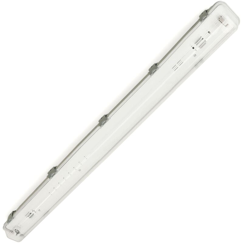 Custodia impermeabile per tubo LED (tubo LED non incluso). Schermo impermeabile appositamente progettato per l'installazione di tubi a LED. Ha i collegamenti elettrici adattati ai tubi LED (controlla che questo modello si adatti al tipo di connessione del tuo tubo LED). Schermo impermeabile appositamente progettato per proteggere il tubo LED dalle intemperie grazie alla sua protezione IP65. Ideale per illuminare facciate, soffitti, abitazioni, parcheggi, zonEsterni, luce commerciale. Sono anche usati per segnare scale e corridoi. Specifiche Custodia impermeabile per tubo LED (tubo LED non incluso), con protezione IP65 contro l'umidità interna. Predisposto per installare un tubo LED T8 da 1200 mm. Portalampada G13. MOLTO IMPORTANTE: schermo predisposto per l'installazione di tubi LED con entrambe le connessioni (L, N) solo a un'estremità. Dimensioni totali montate (lunghezza x larghezza x altezza): 1265 x 80 x 90 mm. Il diffusore è realizzato in policarbonato resistente al calore e