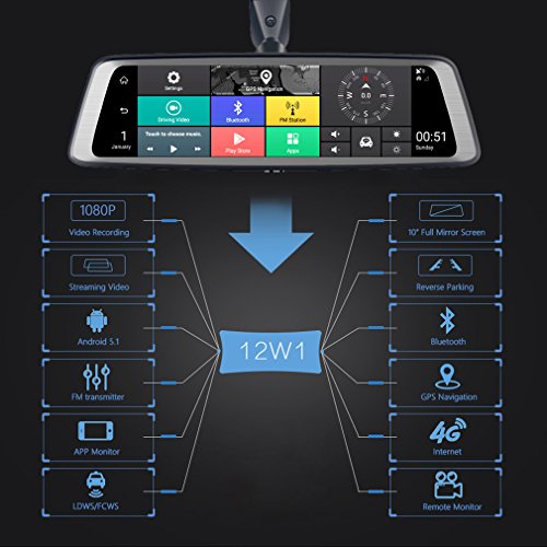 SZKJ K930 Schermo Intero 4G Touch IPS Speciale Auto DVR Dash Cam Retrovisore Retromarcia Specchio con RAM 2 GB ROM 32 GB GPS Bluetooth WIFI Remote monitoring Android 5.1 Dual Lens FHD 1080P