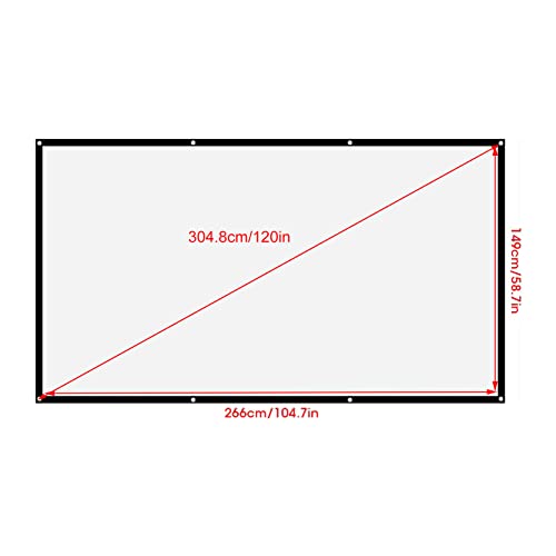 Schermo di Proiezione 16: 9, Schermo di Proiezione Bianco Pieghevole Senza Pieghe Schermo per Proiettore HD Portatile Tenda Morbida Schermo di Proiezione per Home Theater Film (120 pollici)