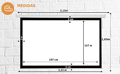 Schermo da proiezione manuale Luxscreen 100" pollici, telo da proiezione 197x147 cm, Cassonetto 210 cm, Compatibile con Proiettori per Cinema a Casa, Sale Conferenze, FULLHD, 3D, 4K