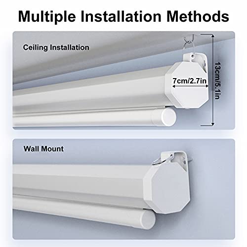 ● Usa il telecomando incluso nella nostra confezione per controllare comodamente lo schermo dal divano. Lo schermo del proiettore può essere fatto scorrere verso l'alto o verso il basso secondo necessità. Ideale per la vita pigra. Motore a bassa rumorosità, funzionamento stabile, durevole.