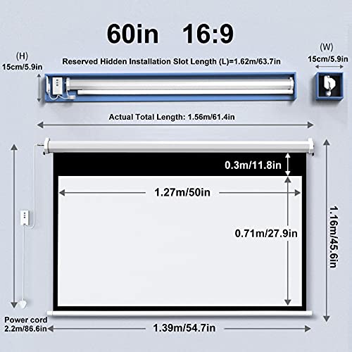 LIUU Schermo di Proiezione Motorizzato con Telecomando Senza Fili,Telo Proiettore Portatile 60 Pollici (4: 3/16: 9),Telo Proiettore Motorizzato 4K