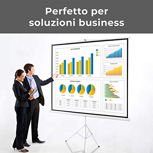 Schermo Proiezione Treppiede Provis(110 Pollici) 200cm Multi Formato 4:3 16:9 16:10 200x200 2 Metri Leggero Schermo Proiettore 2mt Telo Proiettore Schermo Bordi Videoproiezione 2 mt 4K HD 3D