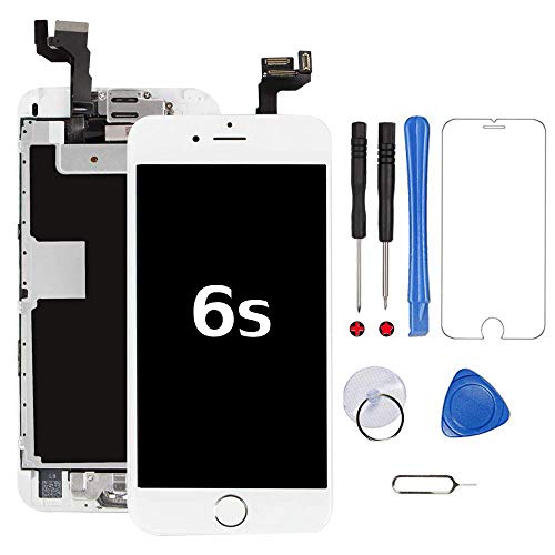 Schermo di ricambio per iPhone 6s LCD Touch Screen Digitizer con montaggio completo include tasto Home + fotocamera frontale + altoparlante auricolare + strumenti (iphone 6s, bianco)
