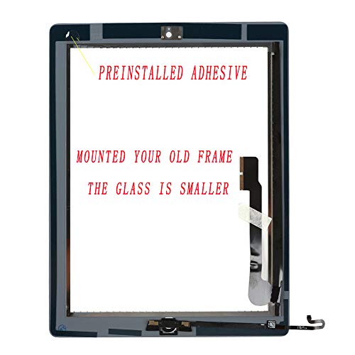 Schermo tattile per iPad 4 A1460, A1458, A1459, Pannello Frontale di Ricambio con Pulsante Home, Attrezzi e Adesivo (Nero)