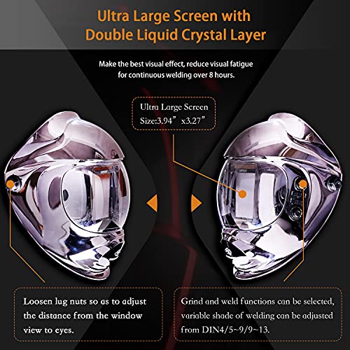 Schermo di Visualizzazione Ultra Grande Colore Reale, Casco per Saldatura Solare Oscuramento Automatico,Lente Emisferica 4C, 4 Sensore d'Arco ad Ampia Tonalità per TIG MIG Maschera Saldatura ad Arco