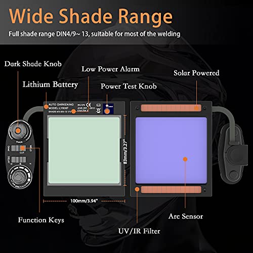 Massima protezione per gli occhi: il filtro autooscurante passa dal chiaro al scuro in 1/10.000 secondi, in caso di guasto elettrico, il saldatore rimane protetto dai raggi UV e IR, la scelta migliore per te. Equilibato con un casco confortevole regolabile e senza fatica. Il peso leggero è adatto per un lavoro di lunga .