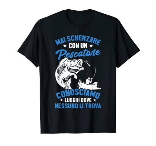 Uomo Mai Scherzare Con Un Pescatore Detto Pesca Maglietta