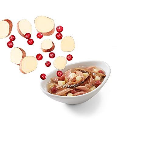 Schesir Salads Pokè, Cibo Umido per Gatti Adulti Gusto Tonnetto con Acciughe, Patata dolce e Mirtillo, Filetti in Salsa - Totale 2,04Kg (24 Lattine da 85G)