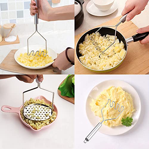 Schiacciapatate con Manico Schiacciaverdure in Acciaio Inossidabile Schiacciapatate in Metallo Spremipatate Manuale Schiacciapatate per Patate Lisce per Purè di Patate Cremoso Verdure Frutta 2 Pezzi