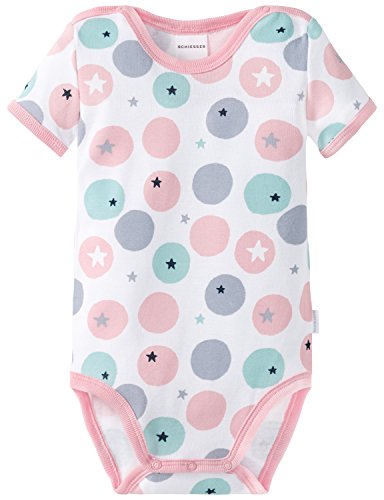 Body bianco a maniche corte per bambine della serie SchIesser "Cirkus Zampano" con coriandoli circo colorato in delicati colori pastello e graziose stelline. Piccola bandiera Sharky sulla cucitura laterale, pratici bottoni a pressione nella zona delle spalle e del pannolino per un facile cambio in morbido tessuto di alta qualità