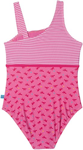 Costume da bagno rosa per bambine della popolare collezione SCHIESSER principessa Lillifee petto con strisce e applicazione a forma di cuore con principessa Lillifee e il suo unicorno, raffinata forma e fascia in vita con fiocco laterale con motivo unicorno nella parte inferiore con motivo unicorno e bandiera Lillifee lateralmente dotato di fattore di protezione solare 40+ in materiale particolarmente resistente e facile da pulire
