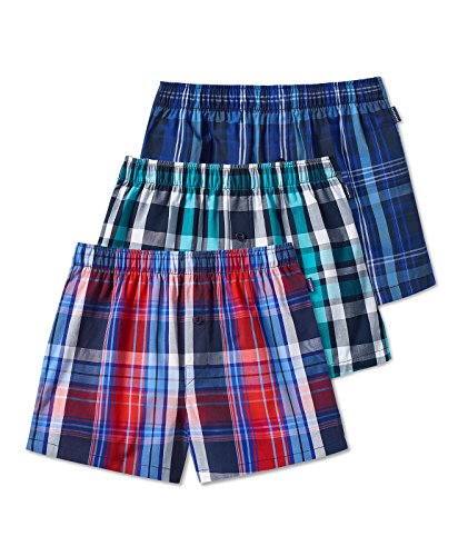 Schiesser Ragazzi Tessuti Boxer Corto 3-Pack Woven Plaid colorato Elastico in Vita - Red, Blue, Turquise