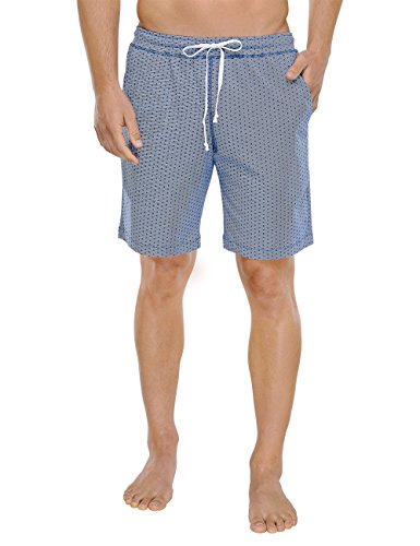 Bermuda da uomo blu della popolare serie SCHIESSER Mix & Relax con righe a maglia e stampa grafica minimal alloverprint, comodo girovita con lacci e tasche laterali in morbido jersey di qualità single ideale da combinare con altri articoli della serie Mix&Relax!