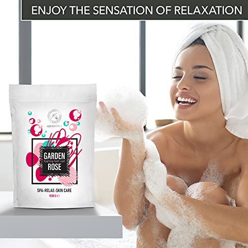 Sali Schiuma da Bagno Rosa 1000g - Sali da Bagno con Olio di Mandorle e Olio di Palissandro ed Estratto di Fiori di Rosa Damascena - Bagno Rilassante - Relax - Aromaterapia