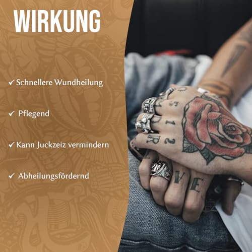 Idrata la pelle durante il tatuaggio e poi lenisce e riduce il rossore della pelle, restringe i pori e riduce l'irritazione e il prurito durante la guarigione delle ferite.