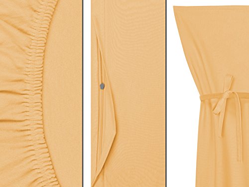 Schlafgut, serie basic in 100% cotone, lenzuolo con angoli elasticizzati e federa in jersey makò, in 33 colori tinta unita e 5 misure, Cotone, curry, Spannbetttuch 90-100 x 200 cm