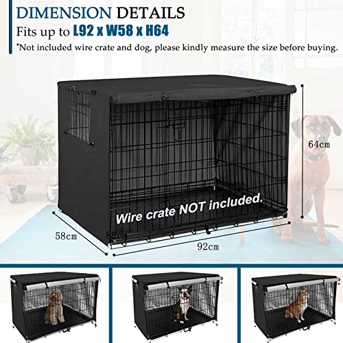 Schleuder Telo Copertura Gabbia per Cani, Tela Oxford 210D Doppia Porta Copri Kennel Cane, Materiale Resistente Impermeabile Ombreggiante Traspirante Copertura per Cane Kennel (95 X 61 X 64cm)